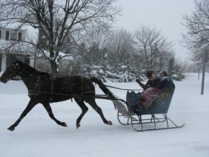 In the fading light of the chilly afternoon, the two children took off on their sled, hitching a ride on a horse-drawn sleigh. Landing near the woods, they ran in without any regard for the approaching evening, the chill in the air, the snow on the ground or the fact that their sled was now broken due to the ride.