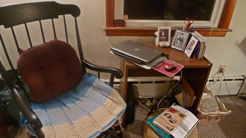 I needed to do the same when it comes to reading and writing. I had all the pieces – comfortable rocking chair, a small desk for my laptop, a bookcase for my books, and a large window looking out onto the deck and the bird feeders.