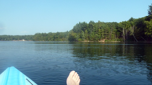 Having taken my kayak, the Sylvia Yule with  me for the trip, I stopped at Walden Pond to observe the place where Henry David Thoreau made his mark.