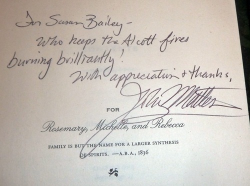 I have to share with you my thrilling memento from my days with Louisa: a personal autograph in my copy of Eden’s Outcasts: The Story of Louisa May Alcott and Her Father from John Matteson. He is aware of the work done here at Louisa May Alcott is My Passion and offered a wonderful word of encouragement.