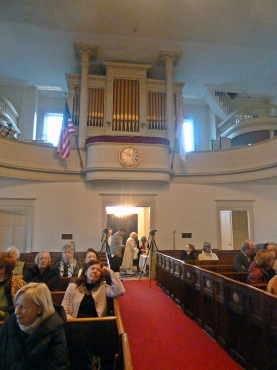 New North Church set the stage perfectly. Built in 1807, it contains the original box pews and a magnificent mahogany altar. In his introduction Pastor Bill Turpie shared connections that the church and the town had with the Alcotts, including a tantalizing tidbit regarding Abba, who attended services while visiting friends in Hingham just before she married Bronson. One of us could have been sitting in the very pew where she sat!