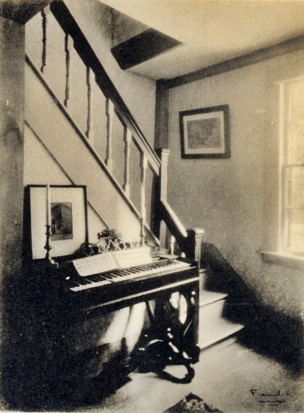 Our tour guide was an elderly woman with a deep knowledge of the family. For example, I learned that Lizzie’s melodeon in the dining room was the one given to her at age 20 by Dr. Henry Whitney Bellows when the family was living in Walpole, NH. Harriet Reisen had mentioned this story in Louisa May Alcott The Woman Behind Little Women and I always wondered if the instrument survived. Eve LaPlante’s book, Marmee & Louisa: The Untold Story of Louisa May Alcott and Her Mother had mentioned the acquisition of a seraphine which is similar in appearance to a melodeon (see previous post). It gave me a special thrill to know that I could see the melodeon that inspired the story of Mr. Laurence’s gift of a piano to Beth. It’s one of my favorite parts of Little Women.