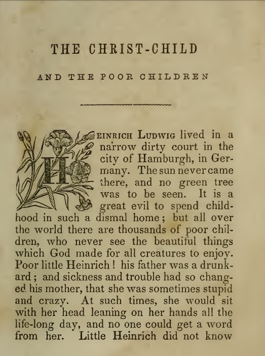 Undoubtedly, stories like “The Christ-Child and the Poor Children” were a common part of the reading diet of the Alcott children. It just struck me as amusing that the very first story I pick up mirrors Little Men in so many ways.