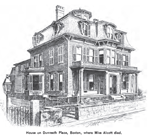 “On Thursday morning, March 2, I chanced to be at the house, where I had gone to inquire for Mr. Alcott and Louisa. While talking with Mrs. Pratt, her sister, the door opened, and Louisa, who had come in from the Highlands to see her father, entered. I had not seen her for months, and the sight of her thin, wan face and sad look shocked me, and I felt for the first time that she was hopelessly ill. After a few affectionate words of greeting she passed through the open doors of the next room.” (Ibid, pgs. 27-28)