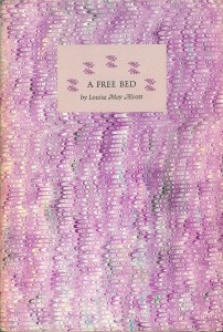 Now for my discovery. Brigham Young has a previously unpublished story by Louisa May Alcott written near the end of her life when she was living in the nursing home of Dr. Rhoda Lawrence, also a homeopathic practitioner. Called “A Free Bed,” it includes an introduction and notes by Madeleine Stern. Brigham Young University published a limited number of copies of the story (350 to be exact), each bound with twine and printed on handmade paper. And, each edition is numbered. I was able to acquire copy number 114 on Amazon for a good price.