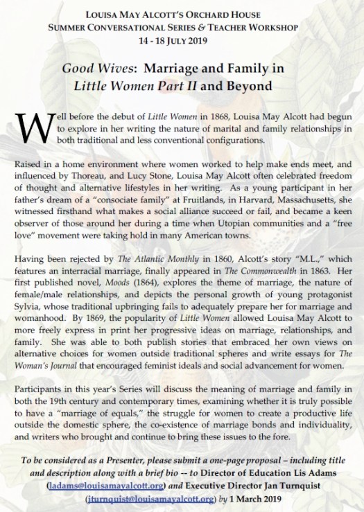 Here is this year’s call for proposals for the Orchard House Summer Conversational Series.