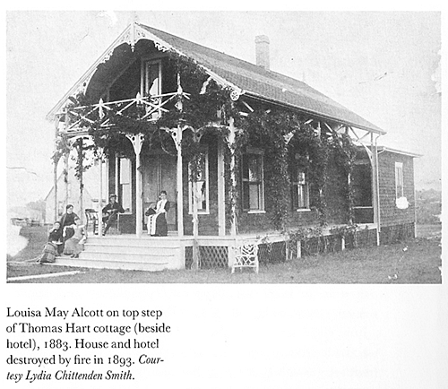 After selling Orchard House in 1884, Louisa May Alcott invested some of the returns into a summer cottage in Nonquitt, a beachfront community in Dartmouth, MA. Nonquitt/Dartmouth are located at the southwest corner of Buzzards Bay along Massachusetts’ south-facing shoreline. In fact, it runs at about a 90 degree angle to the South Shore.