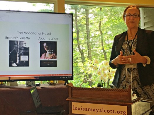 Lisa Elwood invited us to consider a part of her PH.D. Dissertation topic, “The Vocational Novel: A Woman’s Writer’s Aspirations beyond the Domestic Sphere” and used Alcott’s novel Work and Bronte’s novel Villette as examples. She delineated how Alcott and Bronte wrote of the desire of women to have Aspirational careers or “vocations” which she defined as something that leads from a person’s core, an inspirational passion that is separate from religion. The writers dare their readers to imagine themselves as independent, self motivated and spiritually sanctioned participants in the world. Likewise, work can foster the development of one’s natural talents and the assertion of individual genius.
