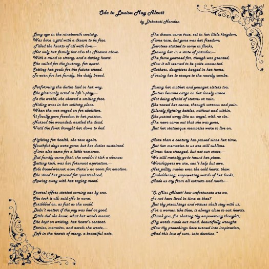 “Ode to Louisa May Alcott,” Written by Deborah Nandan, All rights reserved©