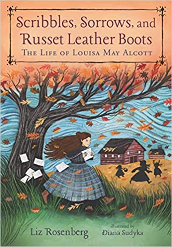 Little Women, a Civil War-based novel about the four March sisters and derived from the life of its author, Louisa May Alcott, has been a classic for well over 100 years. As a result, much has been written about Alcott, both for adults and younger readers. Biographer and young adult writer Liz Rosenberg takes on the difficult task of adding to this canon, succeeding with her outstanding new book, Scribbles, Sorrows, and Russet Leather Boots: The Life of Louisa May Alcott (Candlewick).