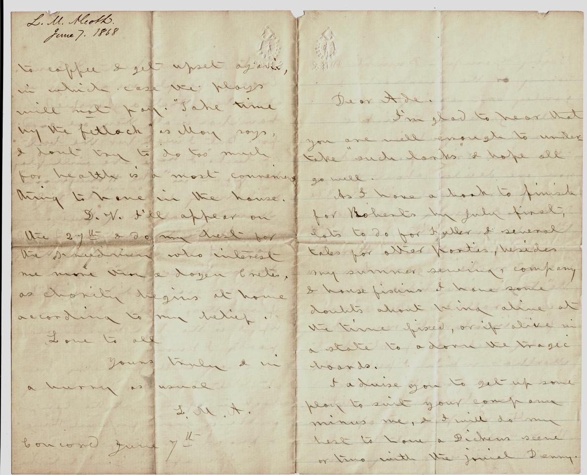 Anke Voss, curator of Special Collections, had this to say about their latest acquisition: “Collecting is not just about finding the rare item but also about whether the material speaks to and with the other collections in your holdings and tells a compelling story. I believe our recent Alcott acquisitions, including the Bicknell Alcott Family Collection and, especially, the significant gift of the Mather Alcott Collection, are an exceptional addition to Special Collections, which, through research and exhibition, will provide a magnificent new window into the lives of the Alcotts.”